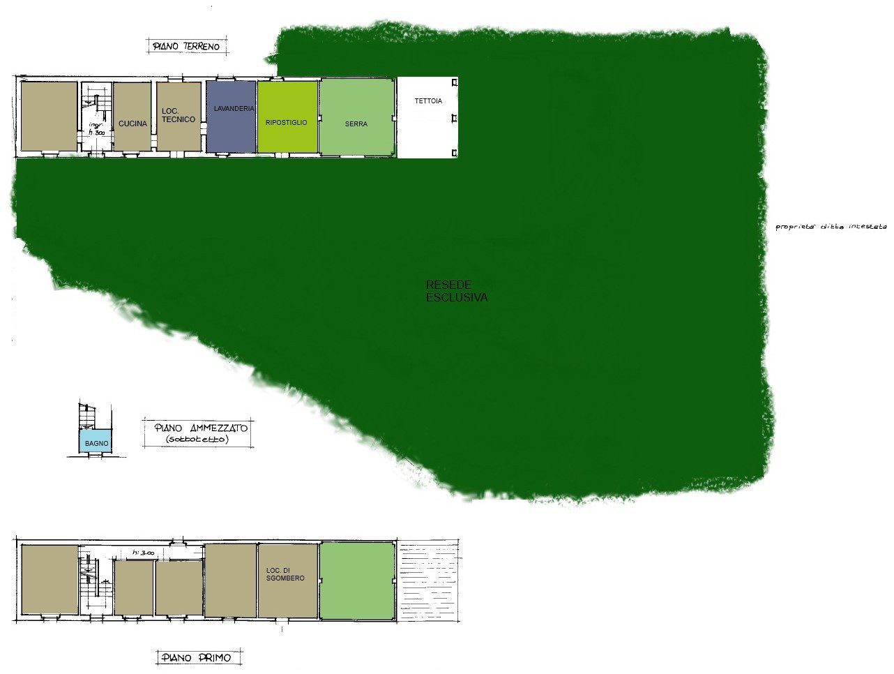 • Piano terra: ampio soggiorno con camino, cucina abitabile, locale tecnico e lavanderia