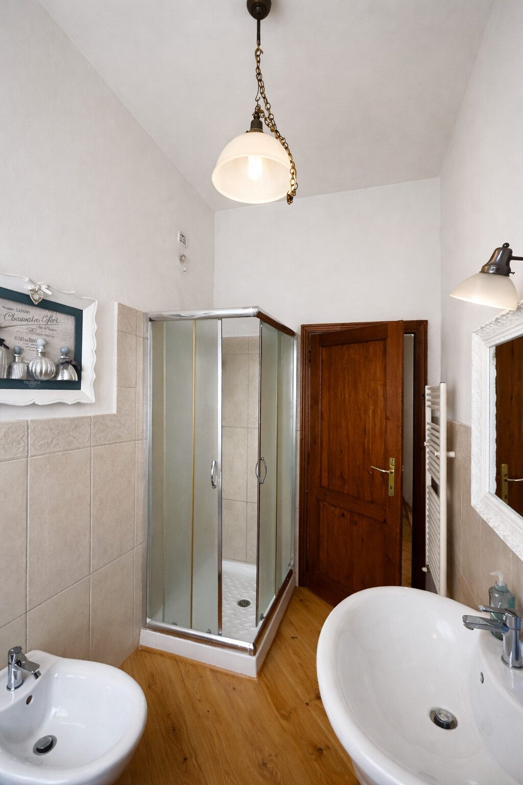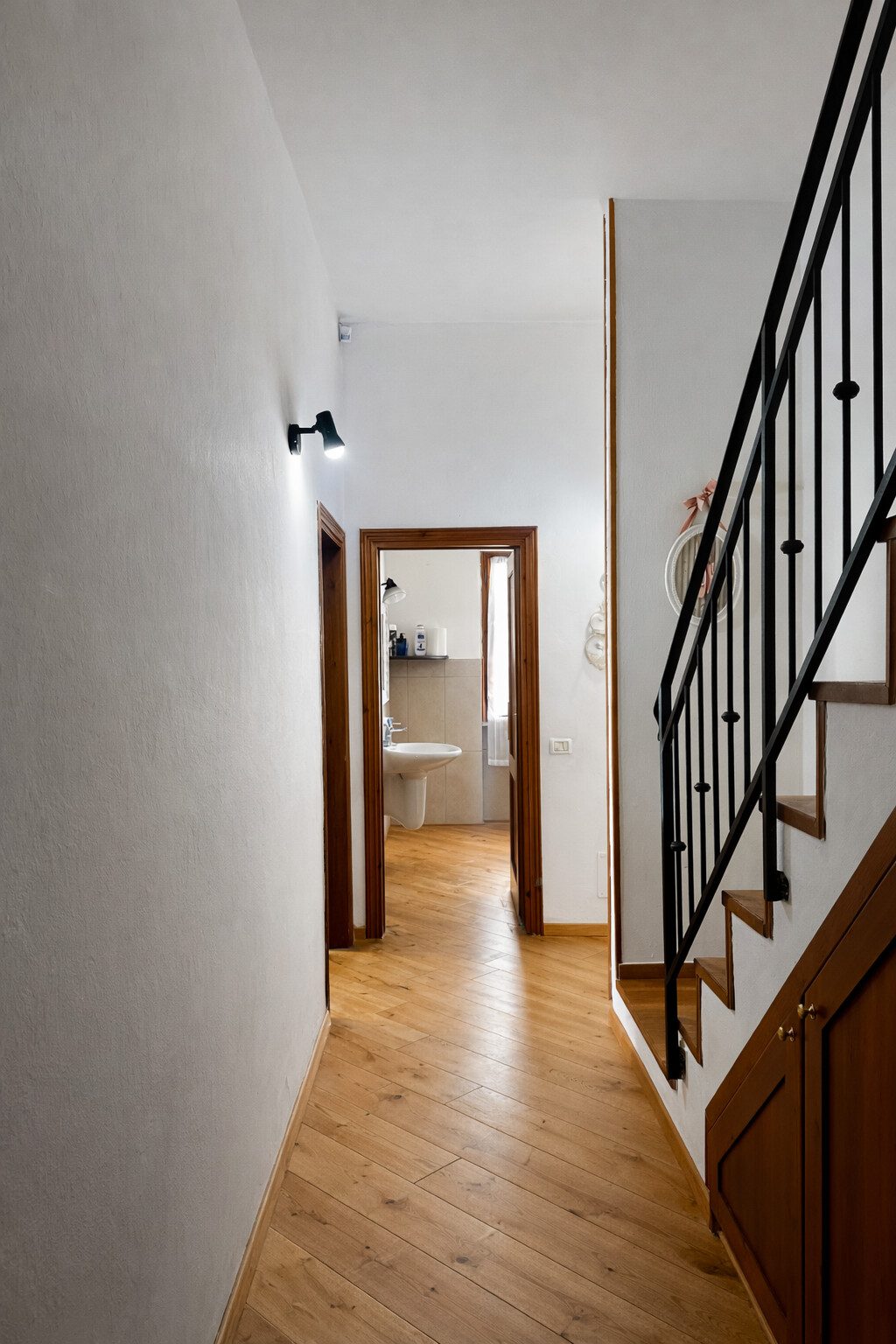 La zona notte principale, ben separata tramite disimpegno, comprende tre camere da letto, di cui due matrimoniali, e due bagni finestrati, uno con vasca e uno con doccia. È presente inoltre un ripostiglio interno.