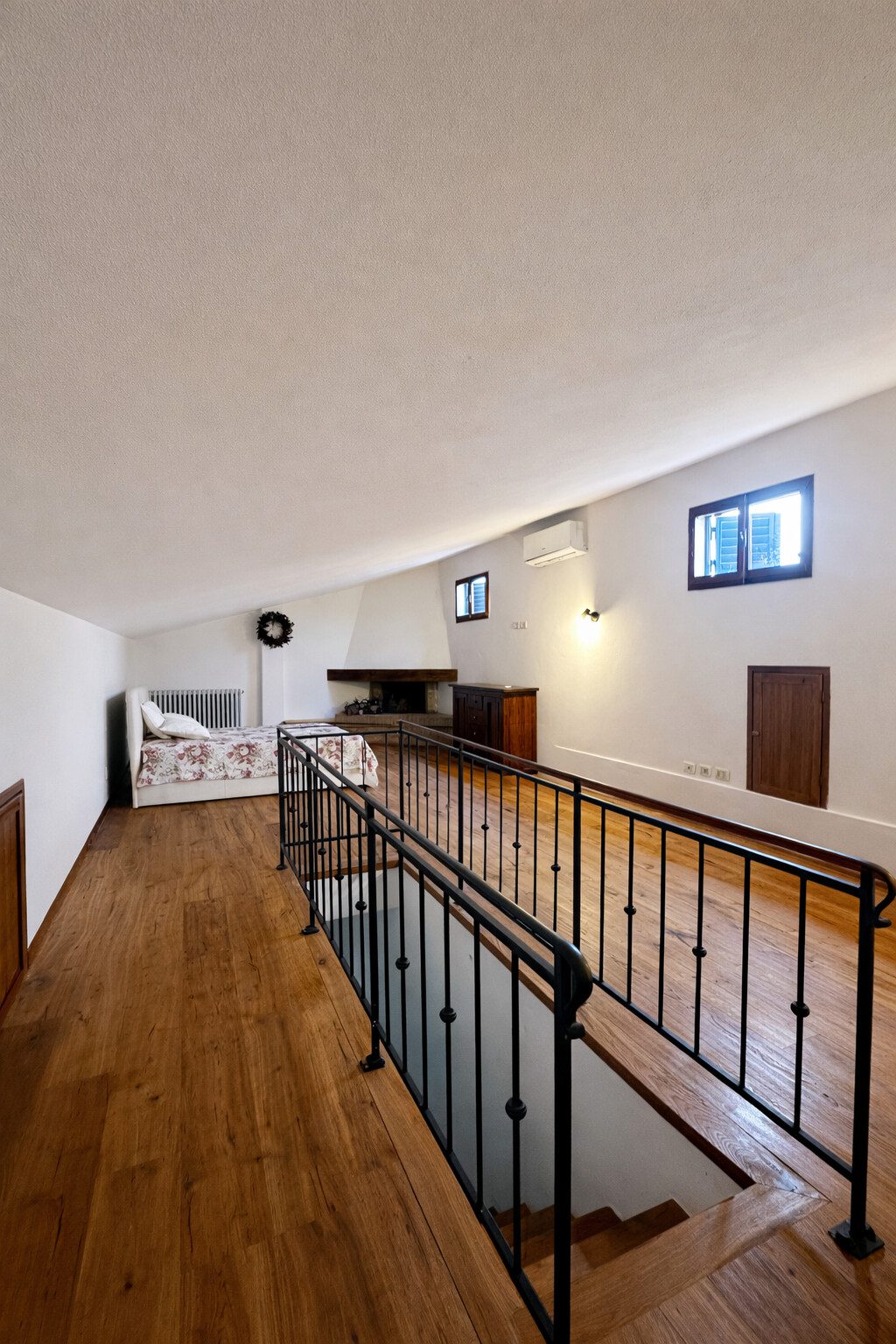Al piano superiore si trova una soffitta finestrata completamente rifinita, adibita a camera da letto, dotata di bagno privato, utilizzabile come quarta camera o stanza indipendente.