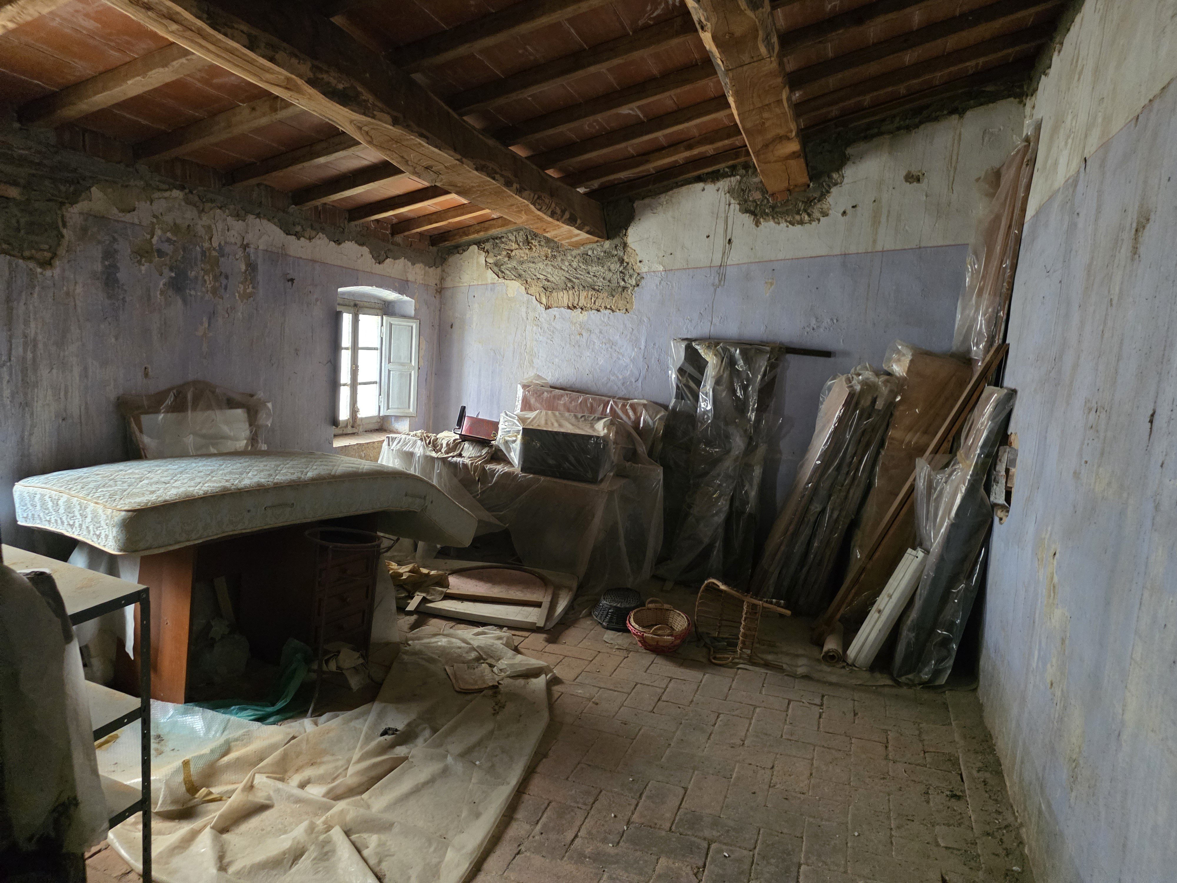 In posizione collinare dominante e facilmente accessibile, fabbricato colonico di civile abitazione di complessivi circa 300 mq, sviluppato su due livelli sfalsati oltre a locali accessori, cantine e rimesse al piano terreno.