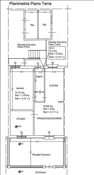 • resede anteriore di circa 25 mq, ideale per zona relax o pranzo all’aperto