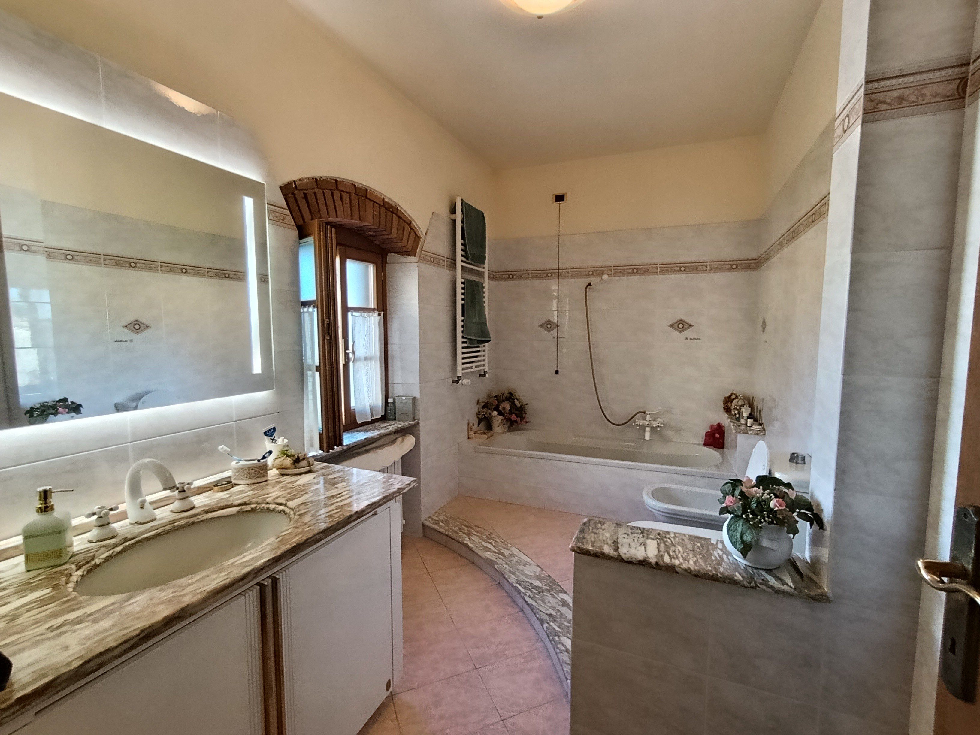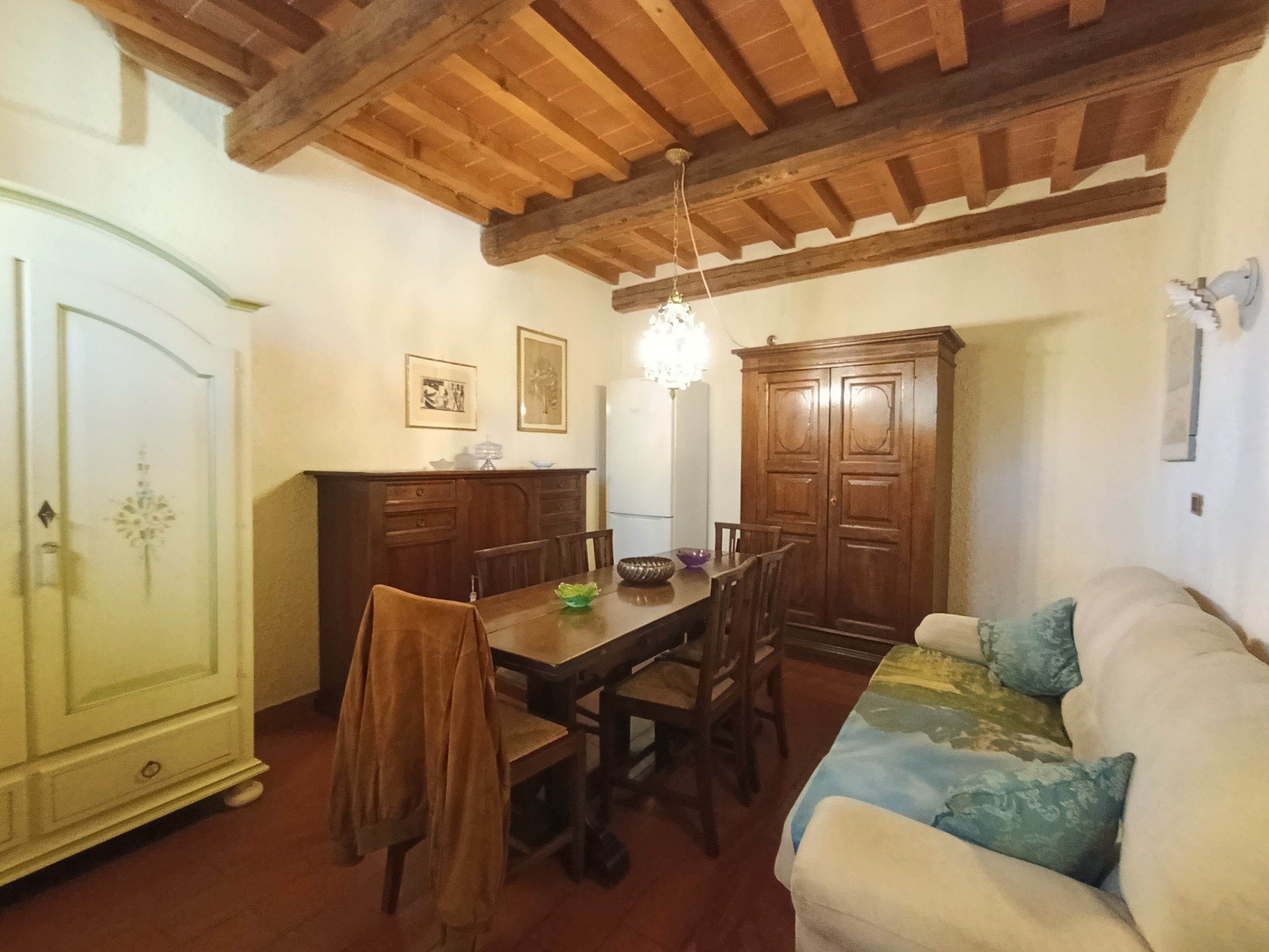 Nelle prime colline di Masotti, in una splendida posizione panoramica, immersa nel verde e a pochi minuti dai principali collegamenti, proponiamo in vendita ampia e luminosa porzione di casa colonica a terratetto di circa mq. 200, disposta su tre livelli e rifinita con il tipico fascino dello stile toscano (travi a vista, mezzane in cotto e dettagli autentici che raccontano la tradizione) – si accede al piano terra da un accogliente ingresso, dove troviamo un vano pluriuso ideale come studio, salendo si arriva all’ampio e accogliente soggiorno, alla cucina abitabile con camino, dal disimpegno si arriva alla zona notte con camera matrimoniale, cameretta, due bagni e ripostiglio, Al piano superiore una caratteristica mansarda ospita una spaziosa camera padronale , uno studio, una lavanderia e un ulteriore bagno, offrendo confort e privacy in un ambiente caldo e raffinato. All’esterno un giardino privato di circa mq. 600, perfettamente curato ed attrezzato, regala piacevole spazio per vivere appieno la tranquillità della campagna toscana, ideale per momenti di relax, pranzi all’aperto e tempo libero in famiglia – oltre ampia zona per parcheggio auto. L’immobile, dove natura, confort e tradizione si incontrano in perfetta armonia, si presente ottimamente rifinito e pronto per essere abitato.
